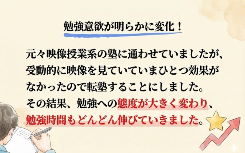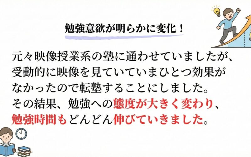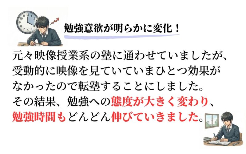 親御様世代は塾の予習復習、10年前は映像授業と参考書、近年は個別最適の学習が主流です。