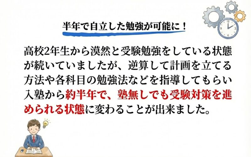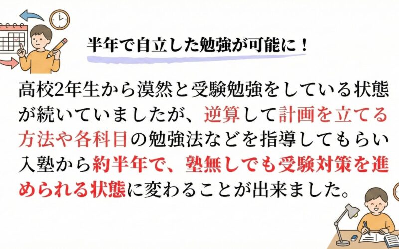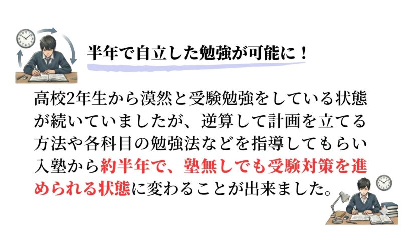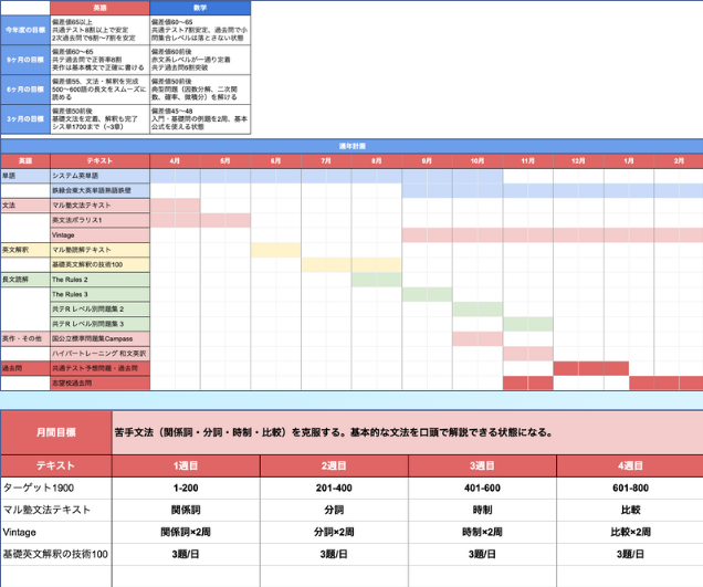 合格点から逆算した6ヶ月目標を個々に合わせて設定し、