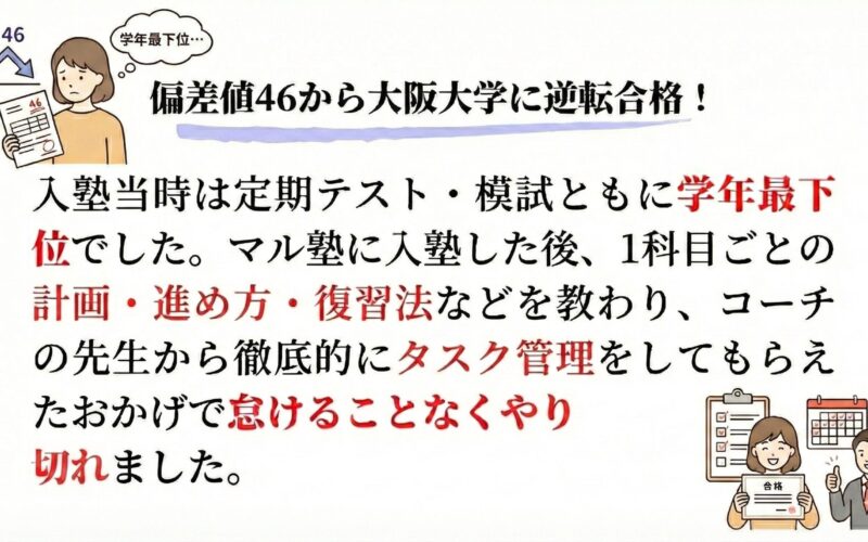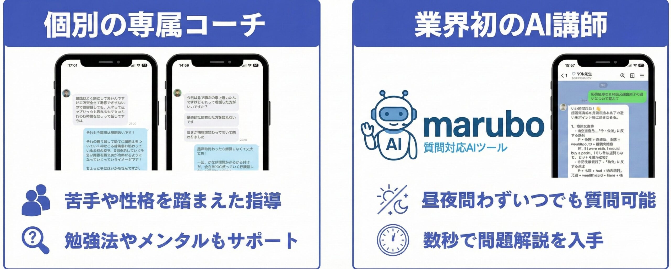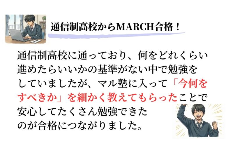 そのためマル塾では、生徒様ひとりひとりに寄り添いご指導いたします。