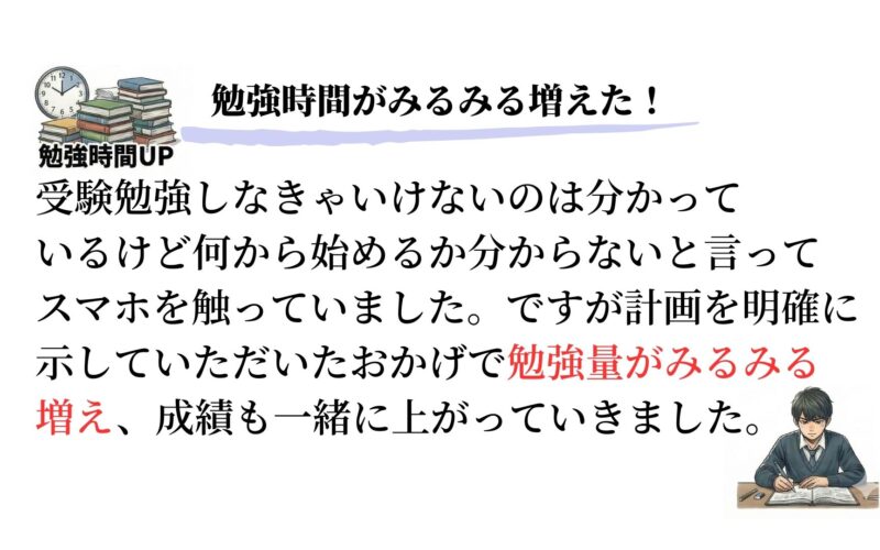 Studyplusとの連携による進捗や学習量の可視化、質問対応の最先端AIツールの導入、週次テストによる定着率の確認を行います。
