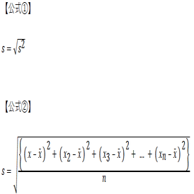 標準偏差の公式は、標準偏差をsと表すと以下の通りです。