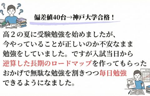 生徒様 生徒様 せりなさん 通信制高校からMARCHに合格! 導入事例 生徒様 偏差値40台→神戸大学合格 生徒様 りきくん 生徒様 半年で自立した勉強が可能に! 生徒様 K.K.くん 生徒様 偏差値46から大阪大学に逆転合格! 生徒様 H.Y.さん