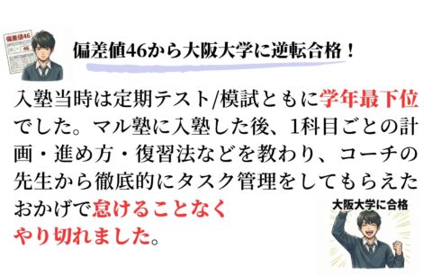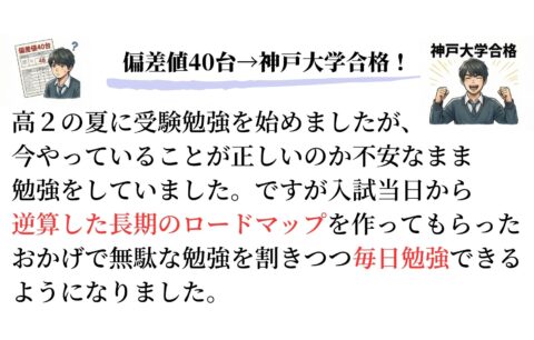 生徒様 生徒様 黒島かんたくん 半年で自立した勉強が可能に! サンプルテキスト。サンプルテキスト。 導入事例 生徒様 偏差値40台→神戸大学合格 生徒様 りきくん 生徒様 通信制高校からMARCHに合格! 生徒様 せりなさん 生徒様 偏差値46から大阪大学に逆転合格! 生徒様 吉村はやとさん
